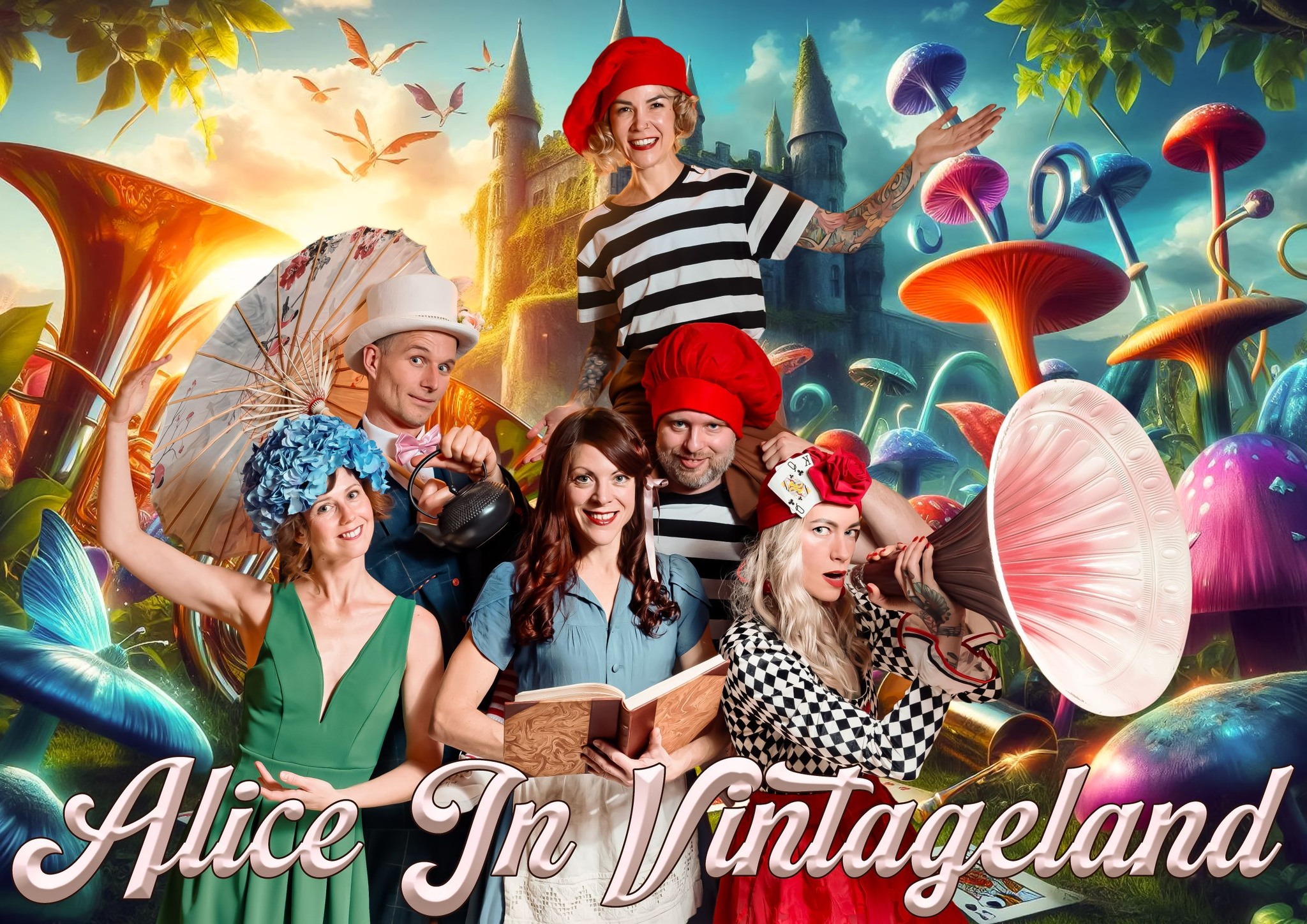 Välkommen till en gnistrande, jazzig resa genom tid och fantasi! Alice in Vintageland är en färgsprakande dansmusikal och vintage varieté i ett – där Lindy Hop, Charleston, Blues och autentisk jazz möter den klassiska sagan i ett vibrerande 1920-tal.